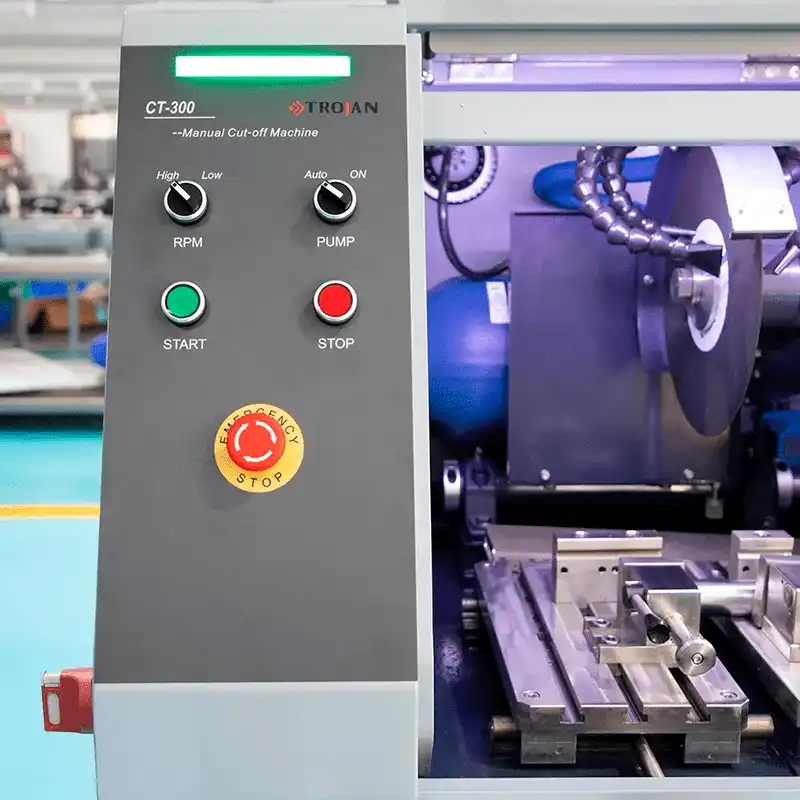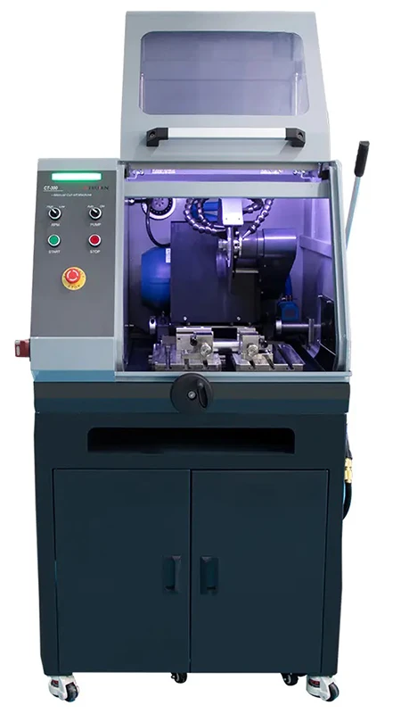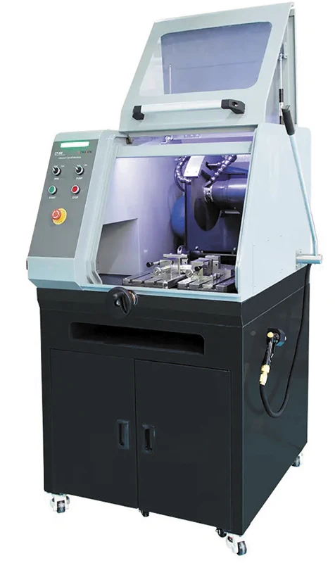 Станок CT-300 для резки материалографических образцов. Станок спроектирован и изготовлен в соответствии с принципами безопасности и защиты окружающей среды. Он подходит для резки образцов из различных металлических и неметаллических материалов для дальнейших исследований структуры металлографических и петрографических образцов. Отрезной станок надежен и прост в эксплуатации, имеет низкий уровень шума, отвечает современным требованиям по безопасности оператора.