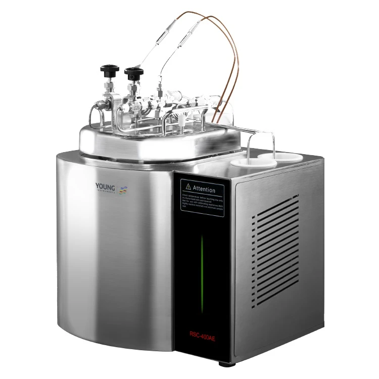 Данный прибор является в некотором роде аналогом дифференциального сканирующего калориметра (ДСК), однако он позволяет работать с намного большим количеством образца, а также проводить измерения при высоком давлении (до 20 МПа). Помимо режима ДСК (анализ реакции в одной бомбе относительно другой), калориметр RSC-400AE дает возможность одновременно изучать две параллельные реакции, протекающие в бомбах, что позволяет значительно повысить производительность лаборатории. Функции отображения статуса прибора, оповещение о критическом превышении температуры и давления, а также блокировка крышки печи при высокой температуре и давлении в бомбах гарантируют безопасность оператора.