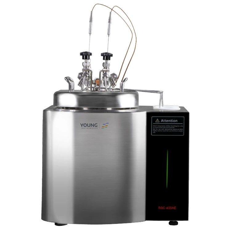 Быстрый сканирующий калориметр RSC-400AE предназначен для оценки изменения температуры, давления, выделения теплоты в процессе различных химических реакций и изучения их кинетики в малом объеме, что дает возможность моделировать процессы, происходящие в больших промышленных реакторах. В приборе используются бомбы объемом 8 мл, выполненные из нержавеющей стали, титанового сплава или сплава Hastelloy. Калориметр RSC-400AE позволяет определять такие параметры, как начальная температура экзотермической реакции, повышение температуры, энергия активации, количество образующихся газов и т. д.