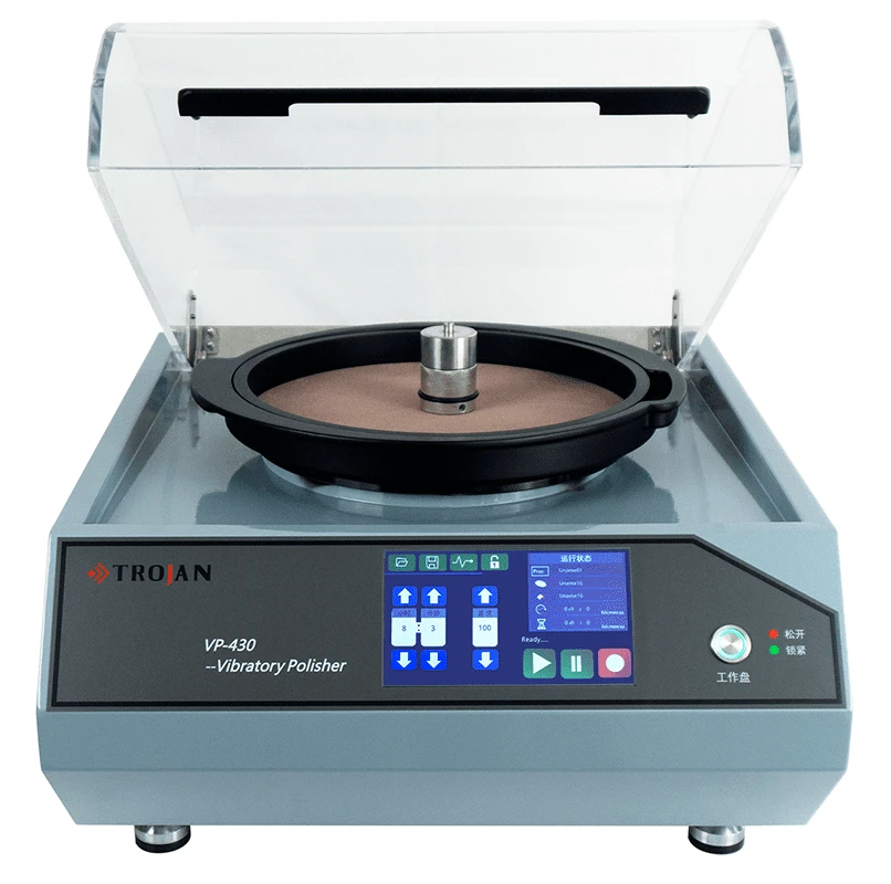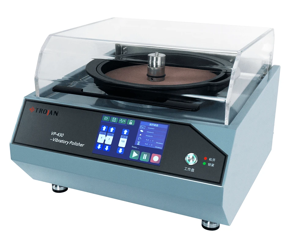 Виброполировальный станок VP-430 предназначен для подготовки поверхностей образцов практически без остаточных деформаций. Этот способ подготовки хорошо подходит для дальнейших исследований такими методами, как EBSD (дифракция обратного рассеяния электронов), SEM (сканирующая электронная микроскопия), наноиндентирование, АСМ (атомно-силовая микроскопия) или измерение микротвердости. Благодаря очень щадящему удалению материала данный метод применим для пробоподготовки мягких и пластичных материалов, таких как титан, алюминий, чистая медь, медные сплавы, алюминиевые сплавы, сталь и сплавы на основе никеля.